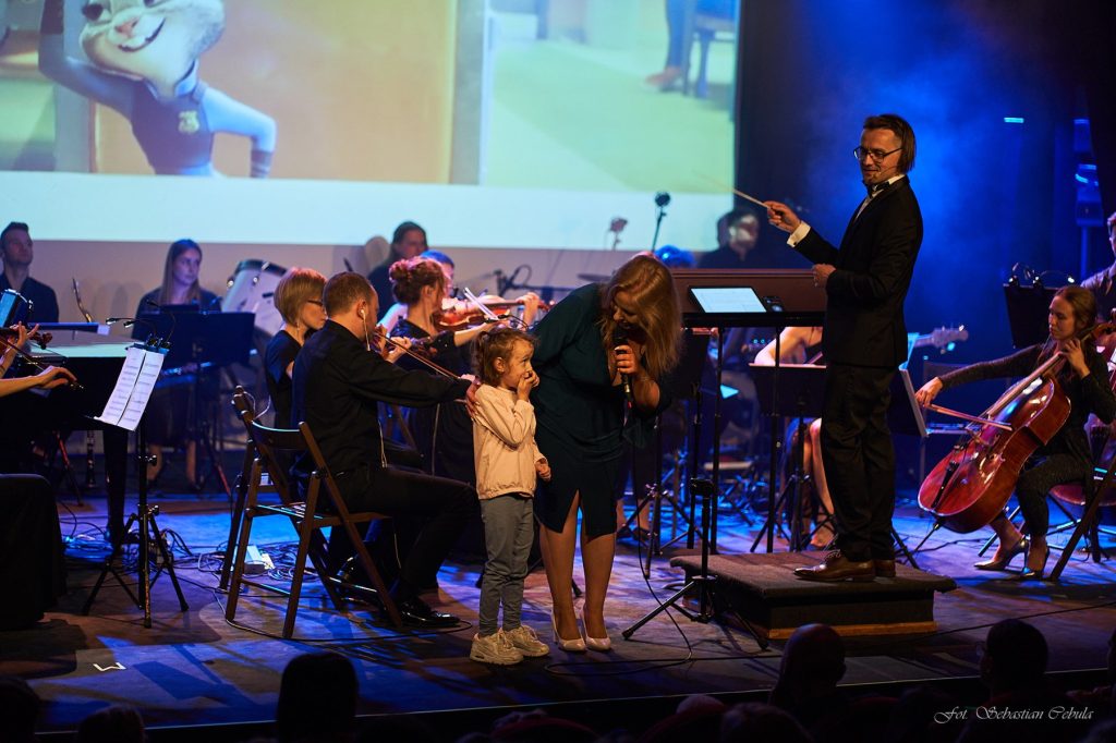 Całą salę wypełnił dźwięk pięknej muzyki, a dzięki Orkiestrze Sinfonia Carpathia pod batutą utalentowanego Wojciecha Zwierniaka, publiczność doświadczyła prawdziwego symfonicznego spektaklu. Instrumenty ze sobą grały, tworząc niesamowite aranżacje utworów z kultowych filmów Disneya. ![]()
